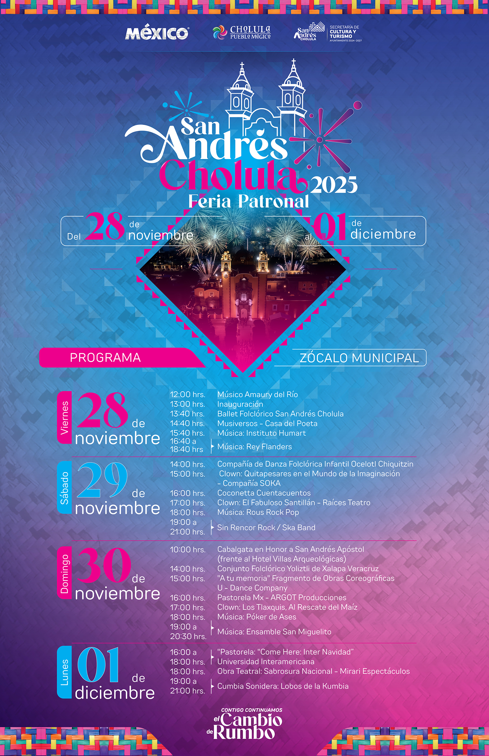 En su mensaje, la alcaldesa resaltó que esta celebración esta profundamente ligada a la festividad religiosa en honor a San Andrés Apóstol, santo patrono del municipio. Cada 30 de noviembre, la comunidad se reúne para presenciar la tradicional quema de castillos, así como para admirar la decoración floral y las alfombras artesanales colocadas en la parroquia que da nombre al municipio y a la festividad. Destacó que, por ser originaria de San Andrés Cholula, esta festividad representa un motivo especial y un impulso para la economía local.